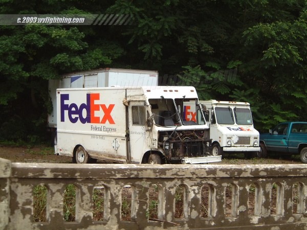 - Damaged Fedex trucks along Greenbrier Street in Charleston, WV after the waters receded.