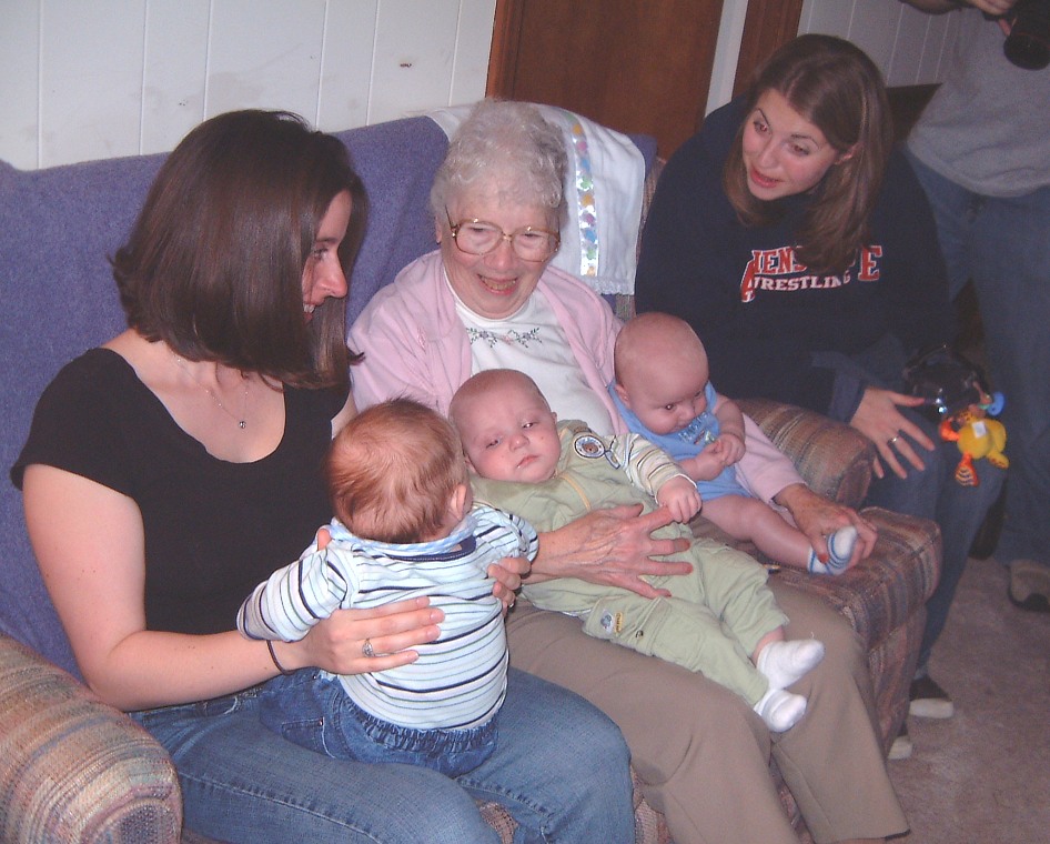 Mana with great-grandsons Caleb, Caleb and Ethan