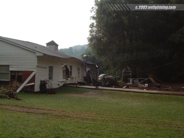 Elk Twomile Creek pushed this building off of its foundation along Rutledge Road in Charleston, West Virginia during the major flash floods of June 16, 2003. Image from 4.7MP digital camera.