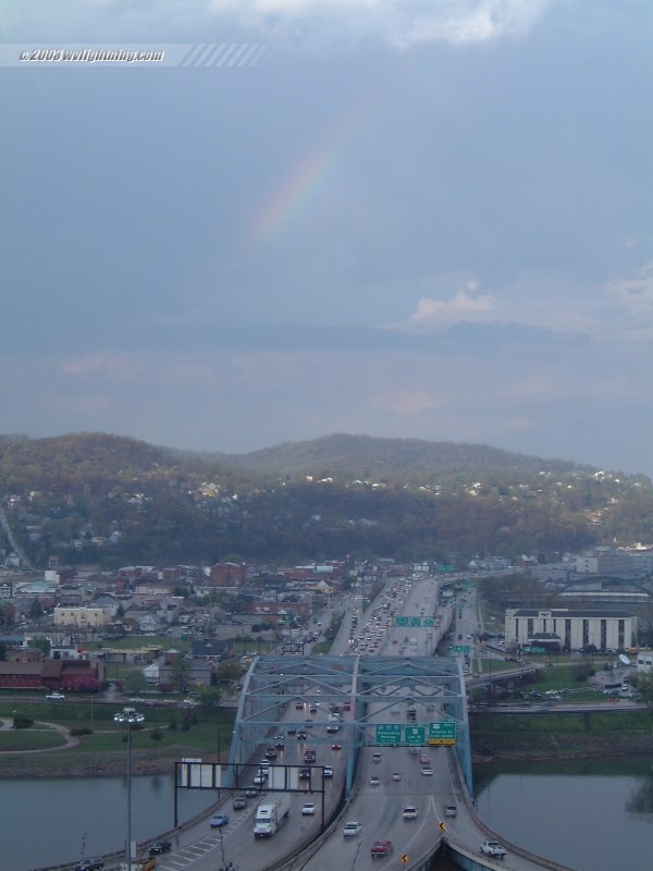 - A sliver remains of a once bright double rainbow over rush hour traffic on I-64 in downtown Charleston, West Virginia.