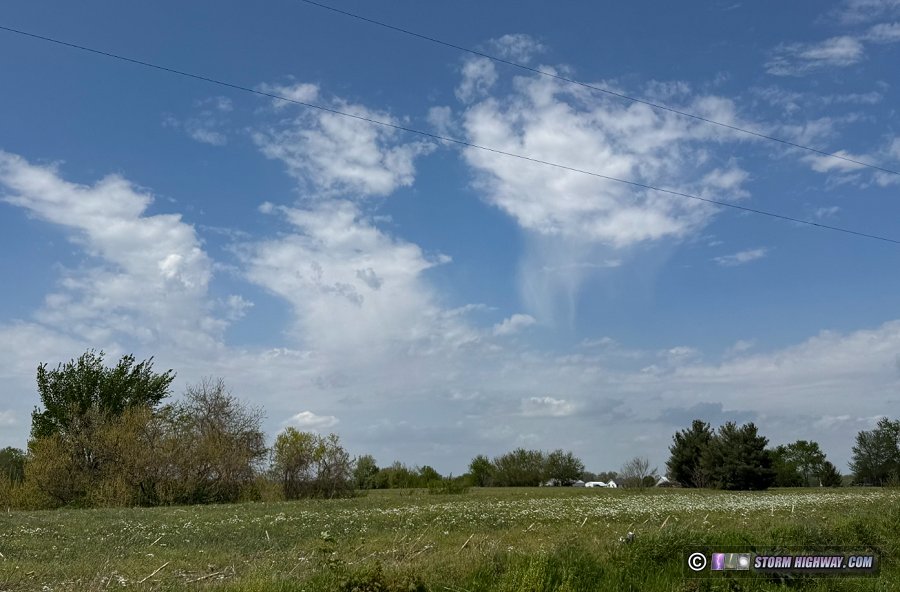 The prospects for storms this day had been poor thanks to models showing that early and midday rain and clouds would persist through the St. Louis metro, preventing any good instability from developing. These forecasts were mostly correct. For a moment, it looked like some clearing to the east of us might be enough for some of this midday activity to organize a little. Radar showed a couple of storms developing RFD surges southwest of Perryville, so I thought it would be worth checking these out as they passed east of Mount Vernon. They rapidly fell apart as they approached me at Belle Rive.