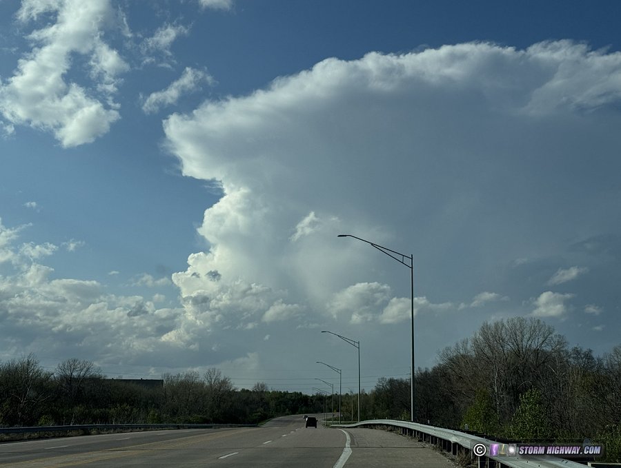 When I woke up at 3, storms had indeed fired and were going severe in the western metro. I drove up to Godfrey to get in front of this activity. The bases were high, lightning infrequent and the storms completely dried up after crossing the river.