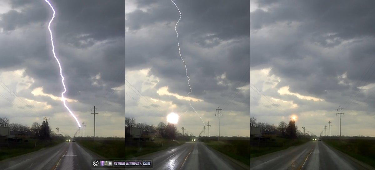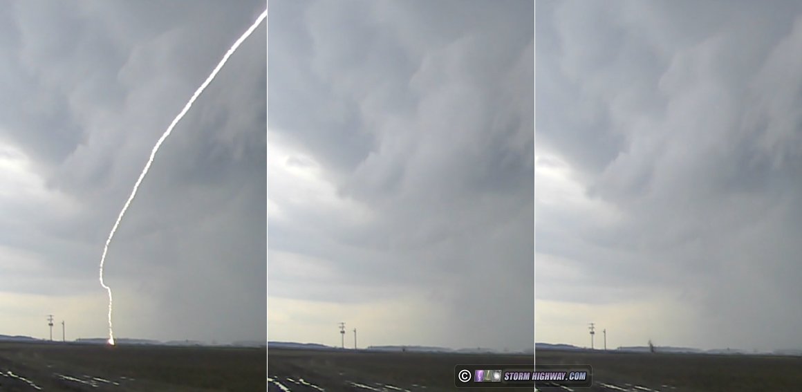 Yet another warm front tornado setup ended up producing the most amazing storm structure I've seen in the Midwest (after living here for 16 years), as well as an absolute lightning bonanza: two of the best close lightning captures in many years, and best of all, the capture of the lightning attachment process at 6,000fps!