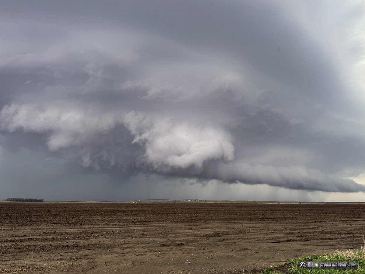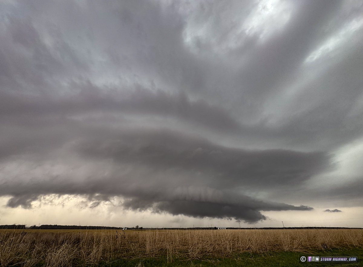 I parked southeast of Havana to watch this storm approach. Initially, it looked awful with a long, outflowy arcus along its entire base:
