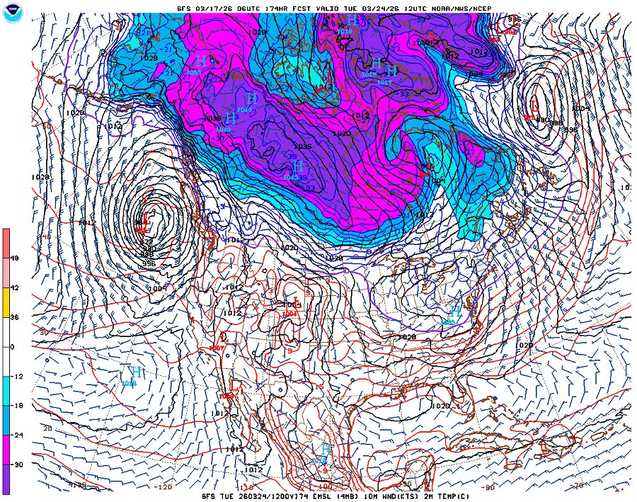 GFS surface temperature forecast for March 24