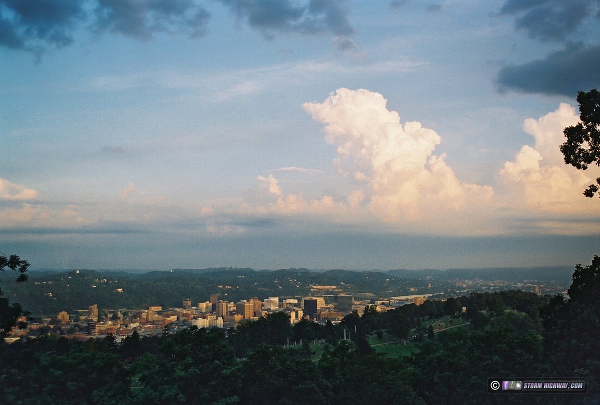 Towering cumulus signal incipient thunderstorms over Charleston, WV, viewed from Spring Hill Cemetery on the morning of June 4, 1999.
