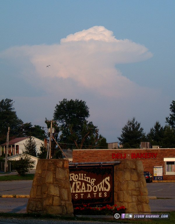 This thunderstorm with an overshooting top was visible to the southeast in Teays Valley on June 15, 2001.